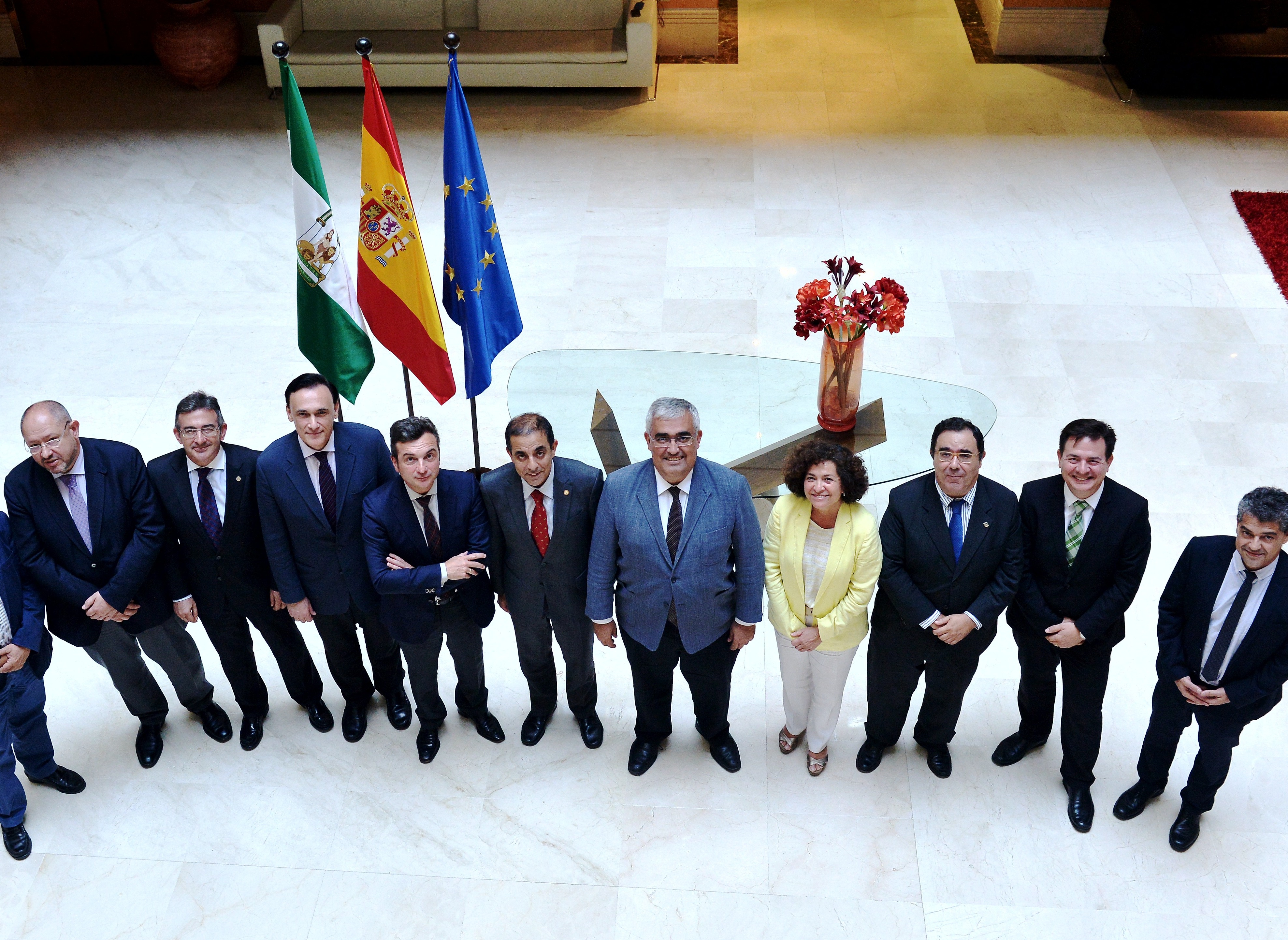 El consejero de Economía y los rectores de las universidades públicas andaluzas.