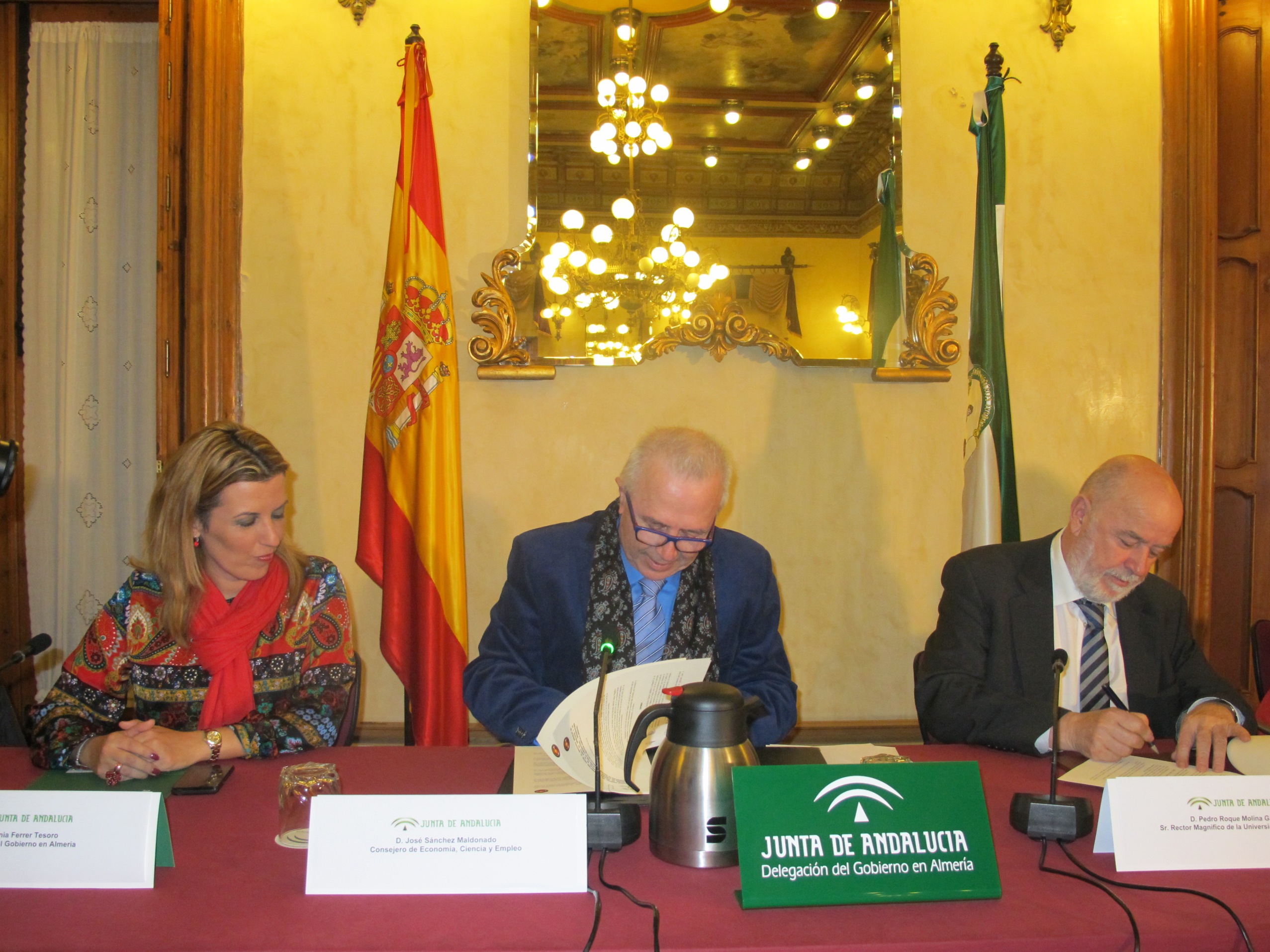 La delegada del Gobierno en Almería, el consejero de Economía y el rector de la Universidad de Almería, Pedro R. Molina García.