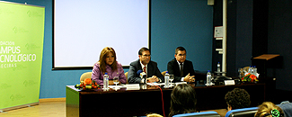 La delegada provincial de la Consejería de Economía, Innovación y Ciencia, Angelines Ortiz; Francisco Trujillo, director gerente de la Fundación Campus Tecnológico de Algeciras, e Ignacio Turias, director de la Escuela Politécnica Superior de Algeciras, han inaugurado en este municipio la jornada de presentación del proyecto CITIE (Centro de Información Tecnológica para el Impulso Empresarial).