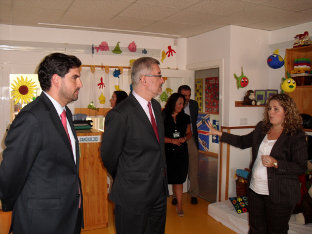 El consejero de Economía, Antonio Ávila, visita el centro de educación infantil de Mercadona en Huévar.