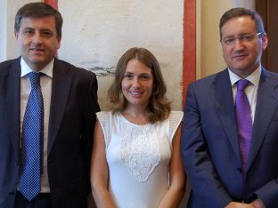 El presidente de GreenPower, Juan M. Carrasco, la consejera delegada de Invercaria, Laura Gómiz, y el consejero delegado de GreenPower, Eduardo Galván.