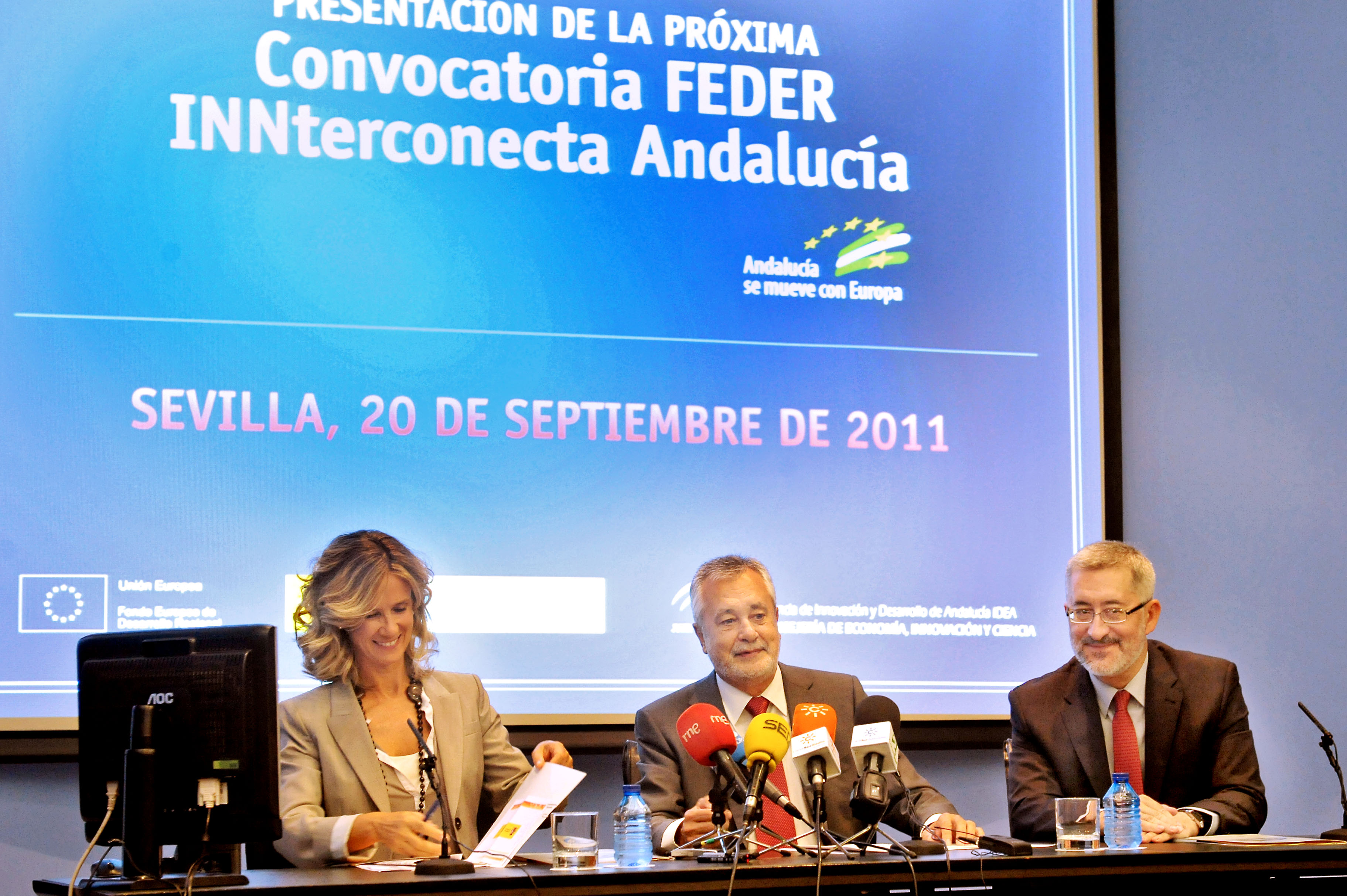 Griñán ha presidido en Sevilla la firma de un protocolo entre la ministra de Ciencia e Innovación, Cristina Garmendia, y el consejero de Economía, Innovación y Ciencia, Antonio Ávila, previo a la convocatoria del programa Feder-Innterconecta Andalucía, que prevé una inversión en la comunidad de 100 millones de euros para apoyar proyectos de cooperación público-privada en I+D.