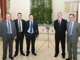 El consejero de Economía, junto al director del CATEC, el director de la ETS de Ingeniería, el vicerrector de Transferencia Tecnológica y el director de la Agencia IDEA.
