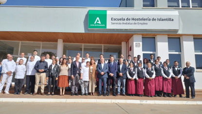 La consejera, Rocío Blanco, ha destacado ese dato durante su visita a la Escuela de Hostelería de Islantilla, uno de los once centros que componen la red de Escuelas de Formación Profesional para el Empleo del Servicio Andaluz de Empleo (SAE), y que en la actualidad se encuentra inmersa en los actos de celebración de su 25 aniversario.