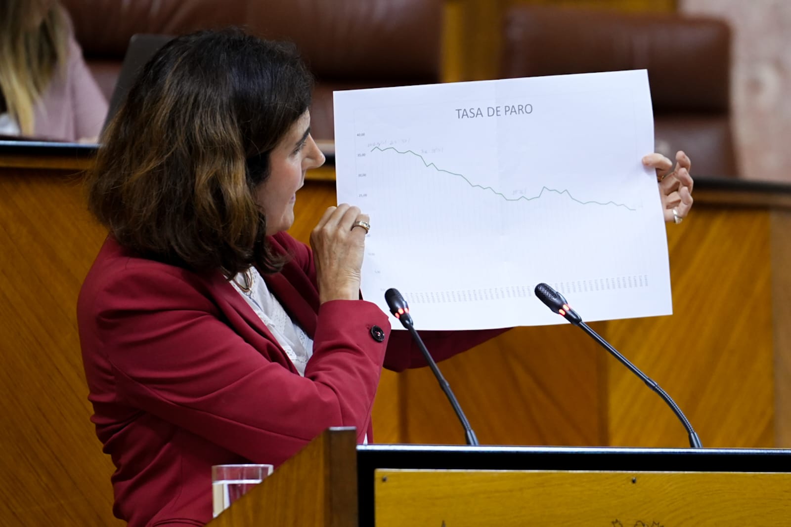 La consejera de Empleo, Empresa y Trabajo Autónomo, Rocío Blanco, ha comparecido esta tarde en el Parlamento andaluz para valorar los últimos datos de la Encuesta de Población Activa del tercer trimestre del año, en los que ha destacado el ritmo anual de descenso del desempleo andaluz, con una tasa de bajada que triplica la registrada en España, y el récord de ocupación gracias a un volumen de creación de empleo que está permitiendo a nuestra comunidad autónoma aportar uno de cada cuatro nuevos ocupados de todo el país.