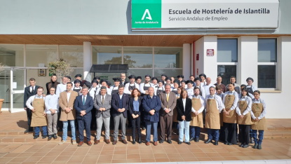 La Consejería de Empleo, Empresa y Trabajo Autónomo ha invertido 1,7 millones de euros en la mejora de las instalaciones de la Escuela de Hostelería de Islantilla (Huelva), adscrita al Servicio Andaluz de Empleo. Las instalaciones del centro de formación han recibido hoy la visita de la consejera, Rocío Blanco, quien las ha definido como “un referente” en el conjunto de los recursos de que dispone su departamento para favorecer la inserción laboral de las personas desempleadas. Blanco ha estado acompañada durante el recorrido por el alcalde de Lepe y el primer teniente de alcalde de Isla Cristina, Adolfo Verano y Francisco Zamudio, respectivamente, así como por el delegado del Gobierno de la Junta de Andalucía en Huelva, José Manuel Correa, y el delegado territorial de Empleo en la provincia, Juan Carlos Duarte.