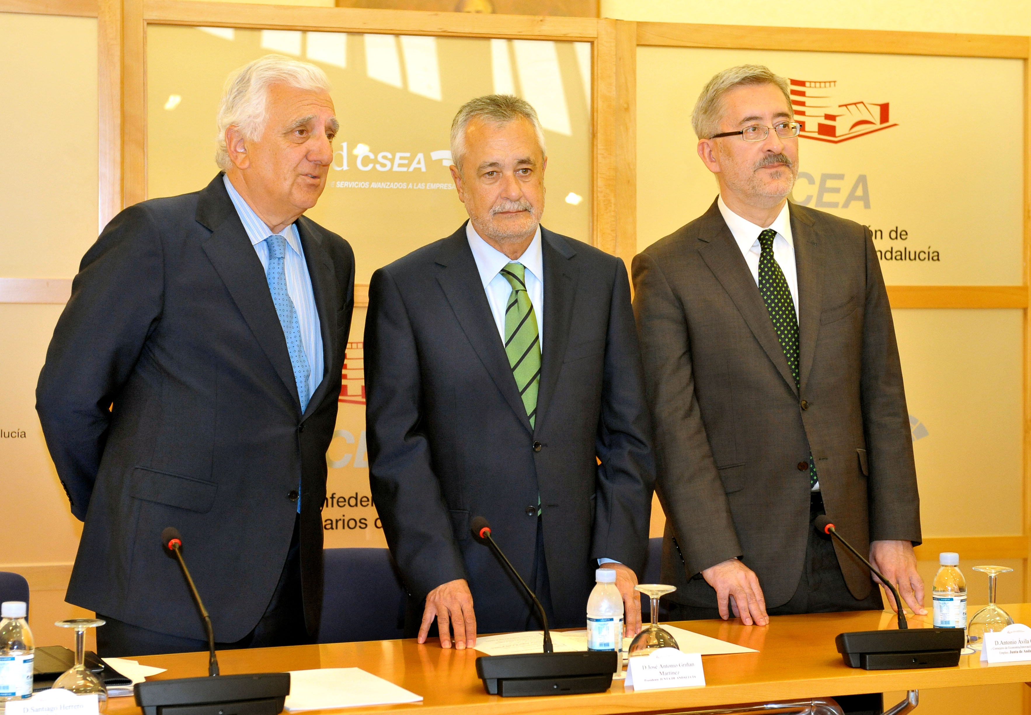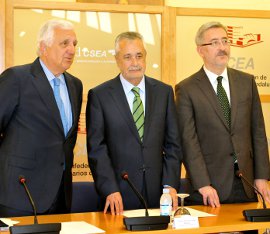 El presidente de la Junta junto con el consejero de Economía y el presidente de la CEA.