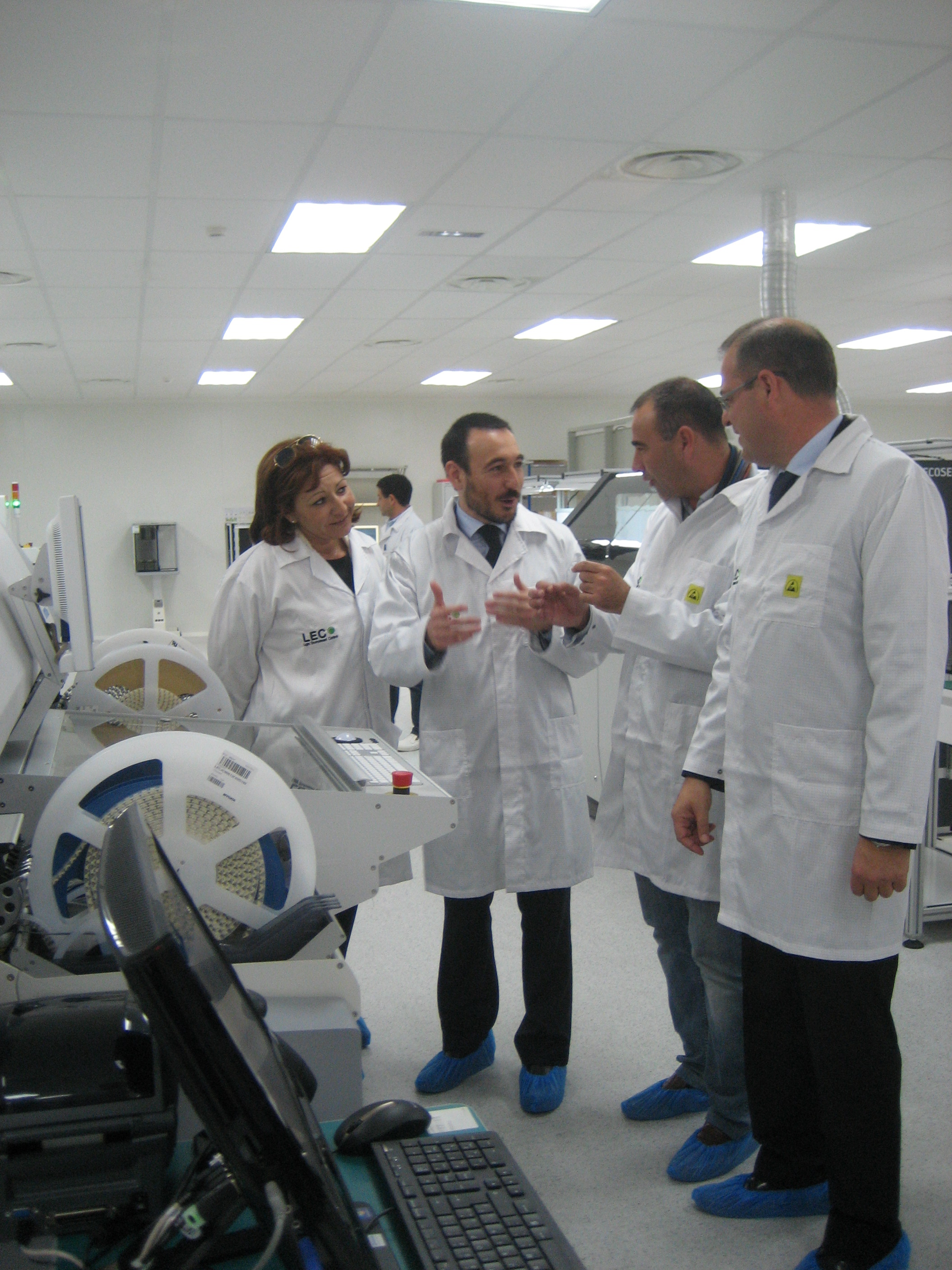 LEC, el primer centro de I+D+i y producción de LEDs de Andalucía, ha inaugurado recientemente su área electrónica, subvencionada en un 16% por la Agencia IDEA –adscrita a la Consejería de Economía- junto con financiación europea de los Fondos FEDER. Con ella, la factoría barbateña completa su planta productiva al 100%, integrada, además, por un área de mecanizado, un área de pintura, un área de caracterización lumínica y un área de montaje. Este jueves, los delegados de la Junta han podido conocer de primera mano estas instalaciones pioneras, sobre todo, la recién estrenada parte electrónica.