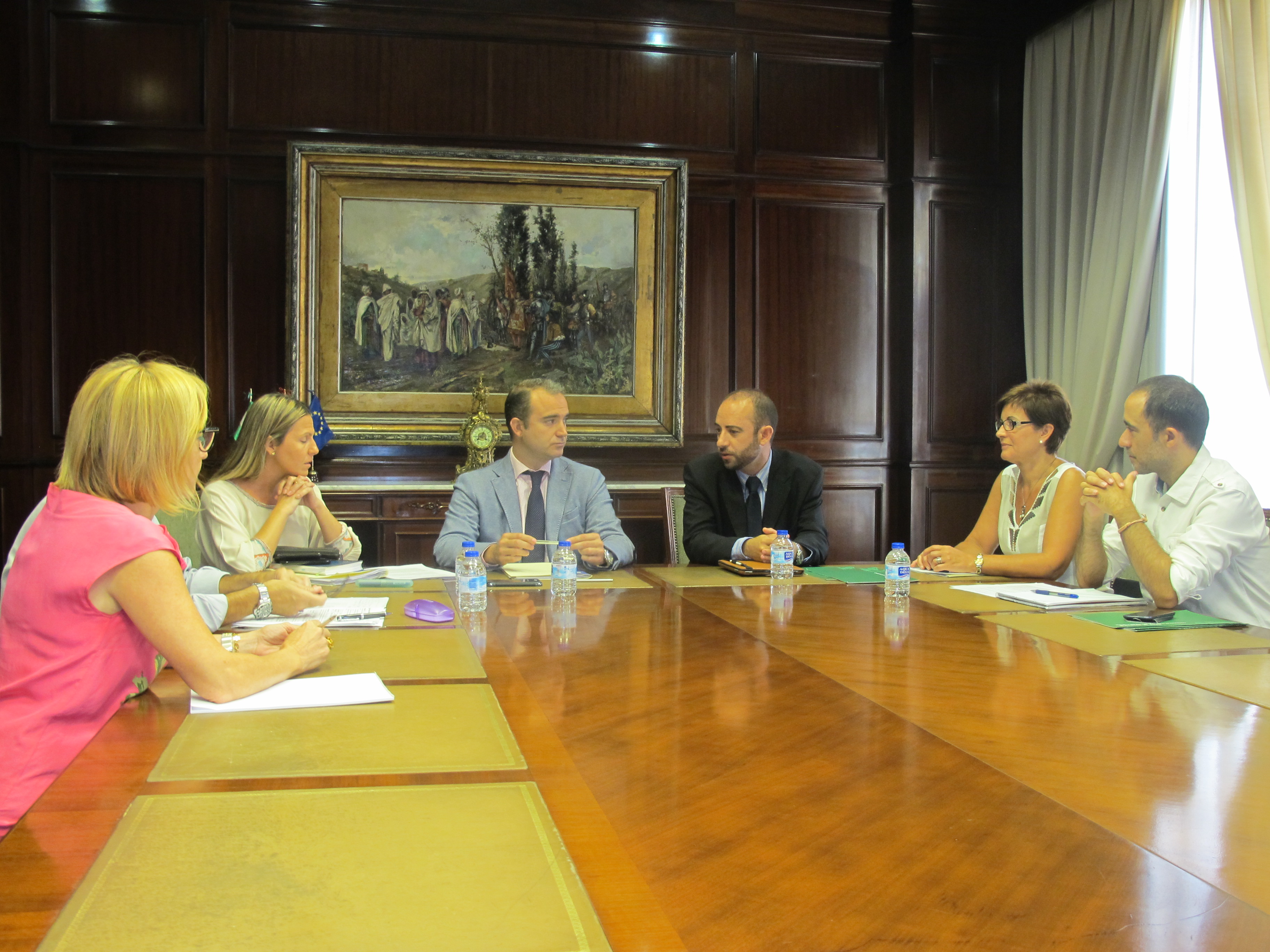 El director general de Telecomunicaciones y Sociedad de la Información de la Consejería de Economía, Innovación, Ciencia y Empleo, Ángel Ortiz, y la delegada territorial de Economía, Innovación, Ciencia y Empleo, Adriana Valverde, se han reunido esta mañana con el diputado provincial de Empleo y Promoción Económica, Amós García, para impulsar la colaboración entre ambas instituciones dentro del programa Guadalinfo, que cofinancian la Junta de Andalucía, con un 67%, y las diputaciones provinciales, con el 33% restante.