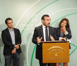 El delegado del Gobierno de la Junta de Andalucía en Cádiz, Fernando López Gil, y el director del Instituto Andaluz de la Juventud (IAJ), de la Consejería de Igualdad, Salud y Políticas Sociales, Raúl Perales, acompañados por la delegada de Economía, Innovación, Ciencia y Empleo, Angelines Ortiz, han presentado en Cádiz la nueva línea de apoyo a la juventud Innovactiva 6.000, para la creación de empresas en Andalucía. Esta línea de incentivos, que cuenta con un presupuesto de 1,7 millones de euros, supone un estímulo para la juventud andaluza que ha finalizado sus estudios universitarios y de formación profesional de grado superior, a la hora de constituir empresas en Andalucía.