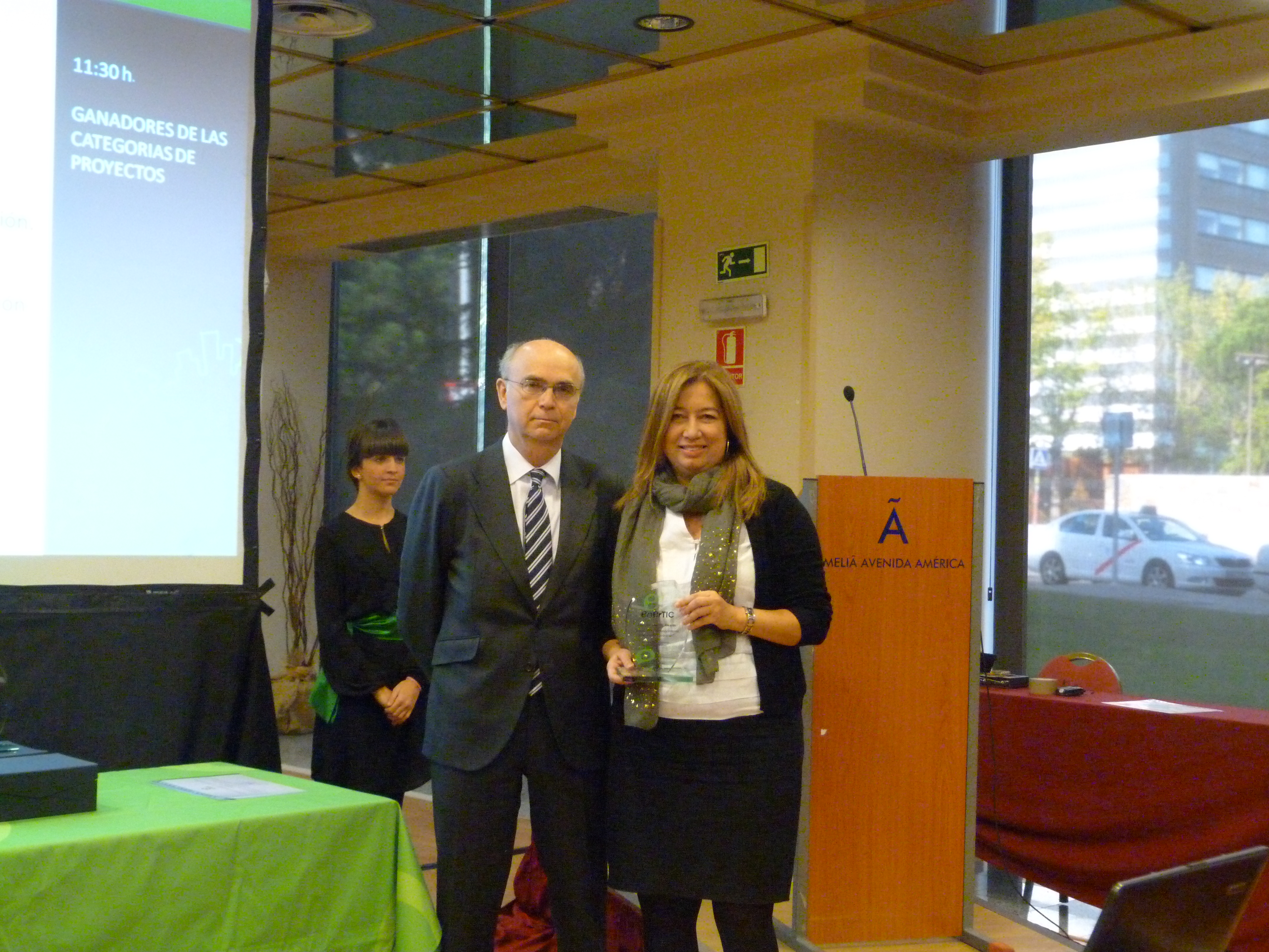 La directora general de Telecomunicaciones y Sociedad de la Información, Susana Radio, acompañada de la secretaria general de la Agencia Andaluza de la Energía, Natalia González, han sido las encargadas de recoger este Premio en el acto oficial de Entrega de los enerTIC Awards "Innovación y Reconocimiento a las mejores prácticas en el uso de nuevas tecnologías para mejorar la Eficiencia Energética", donde han estado presentes los principales agentes del mundo de las TIC y la energía. La directora general ha agradecido el premio y ha felicitado al resto de participantes y finalistas, destacando la importancia del nexo de unión entre todos, su labor diaria de fomento del ahorro y la eficiencia energética que tantos beneficios, económicos y ambientales reporta en los distintos territorios del país. Asimismo, ha recordado la necesidad de que el Gobierno de España recupere la relación de colaboración con las Comunidades Autónomas para el desarrollo de estas políticas, abandonada desde el año 2011.
