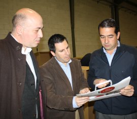 De izquierda a derecha, el alcalde de Rute, Antonio Ruiz, el delegado de Economía, Innovación, Ciencia y Empleo, José Ignacio Expósito, y el responsable de Innovaciones Subbética, Francisco Córdoba .