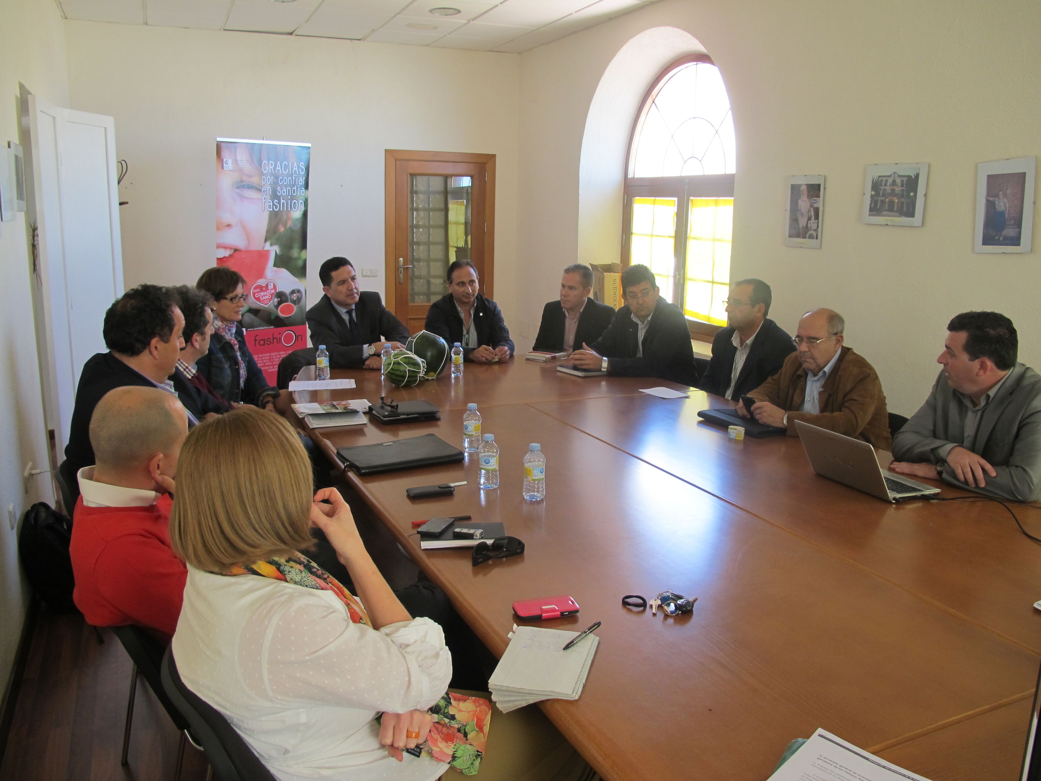 El secretario general de Economía, la delegada territorial de Economía, Innovación, Ciencia y Empleo, el presidente y el director general de Grupo AGF Fashion y miembros de su junta directiva.