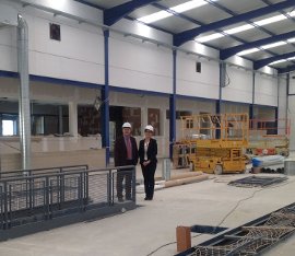 Visita de la delegada territorial de Economía, Innovación, Ciencia y Empleo, Adriana Valverde, a las obras de la ITV de Níjar en abril de 2013.