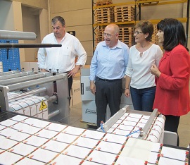 La delegada territorial de Economía, Innovación, Ciencia y Empleo, Adriana Valverde, en una visita a la empresa Villoslada Label, S.L., apoyada por IDEA