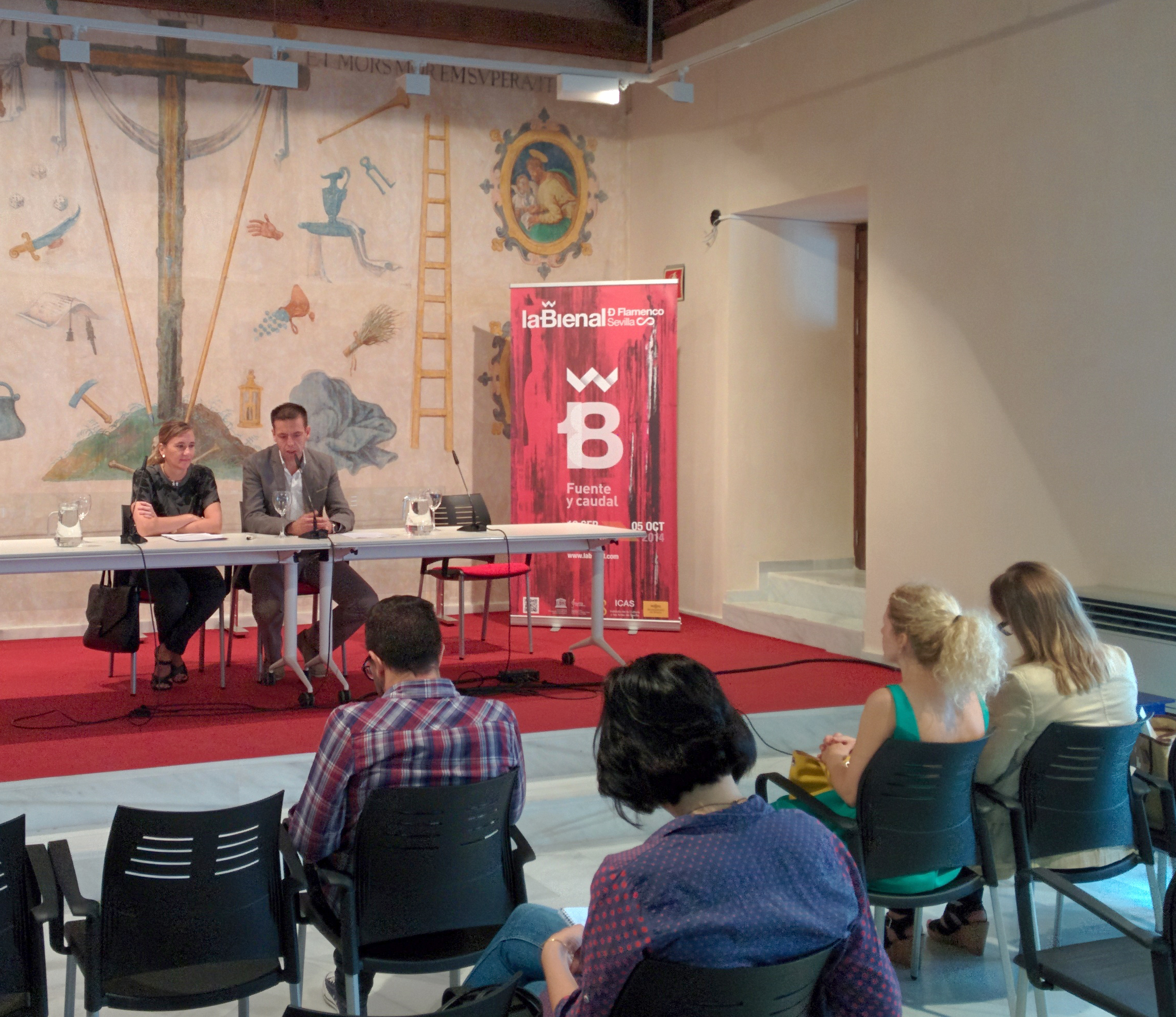 Vanessa Bernad, consejera delegada de Extenda y Cristóbal Ortega, director de la Bienal de Flamenco de Sevilla, han presentado este encuentro que tiene como objetivo facilitar la salida al mercado internacional de las firmas del sector y generar sinergias entre las empresas andaluzas y los invitados internacionales que son, fundamentalmente, programadores y directores de festivales de flamenco internacionales.