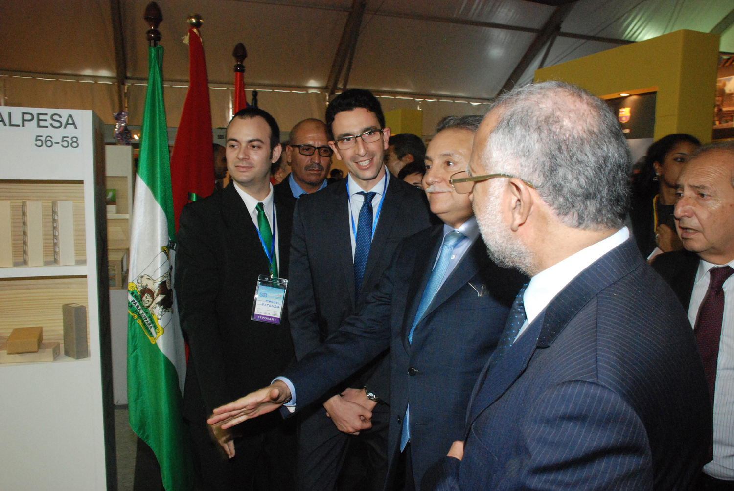 Stand andaluz en SIB con el director de la Oficina de Extenda en Casablanca y el ministro marroquí de Vivienda, Urbanismo y Política, Nabil Benabdallah.