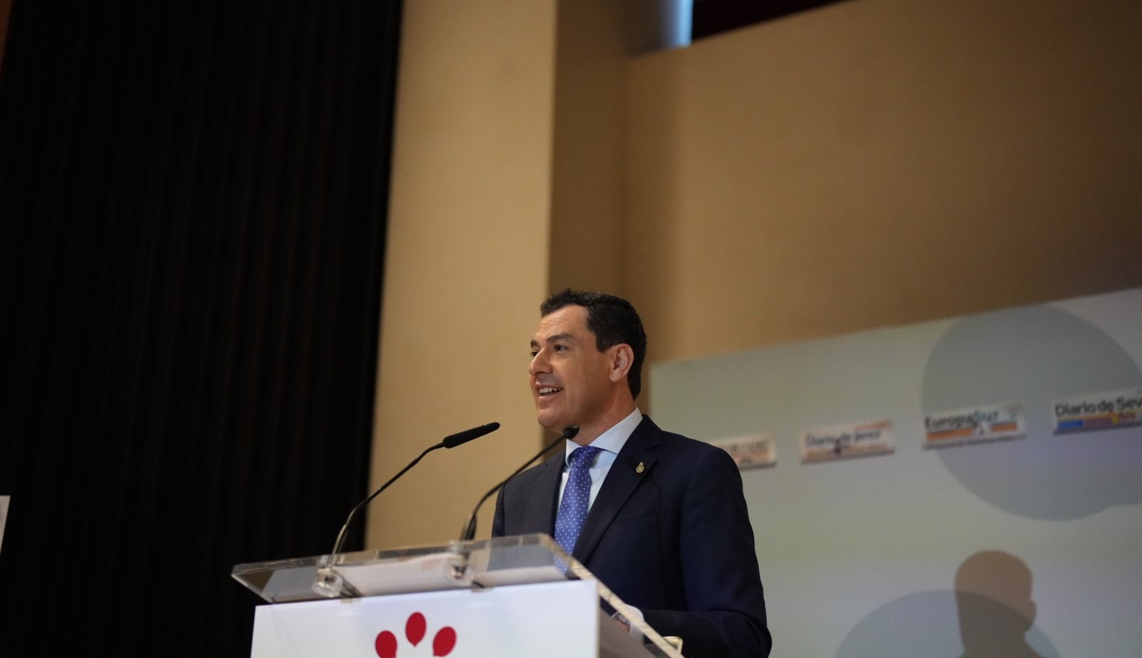 El presidente de la Junta de Andalucía, Juanma Moreno, esta mañana en el Foro Joly.