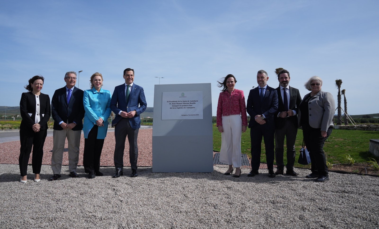 El presidente de la Junta, Juanma Moreno, ha inaugurado este mañana la primera fase del Puerto Seco de Antequera.
