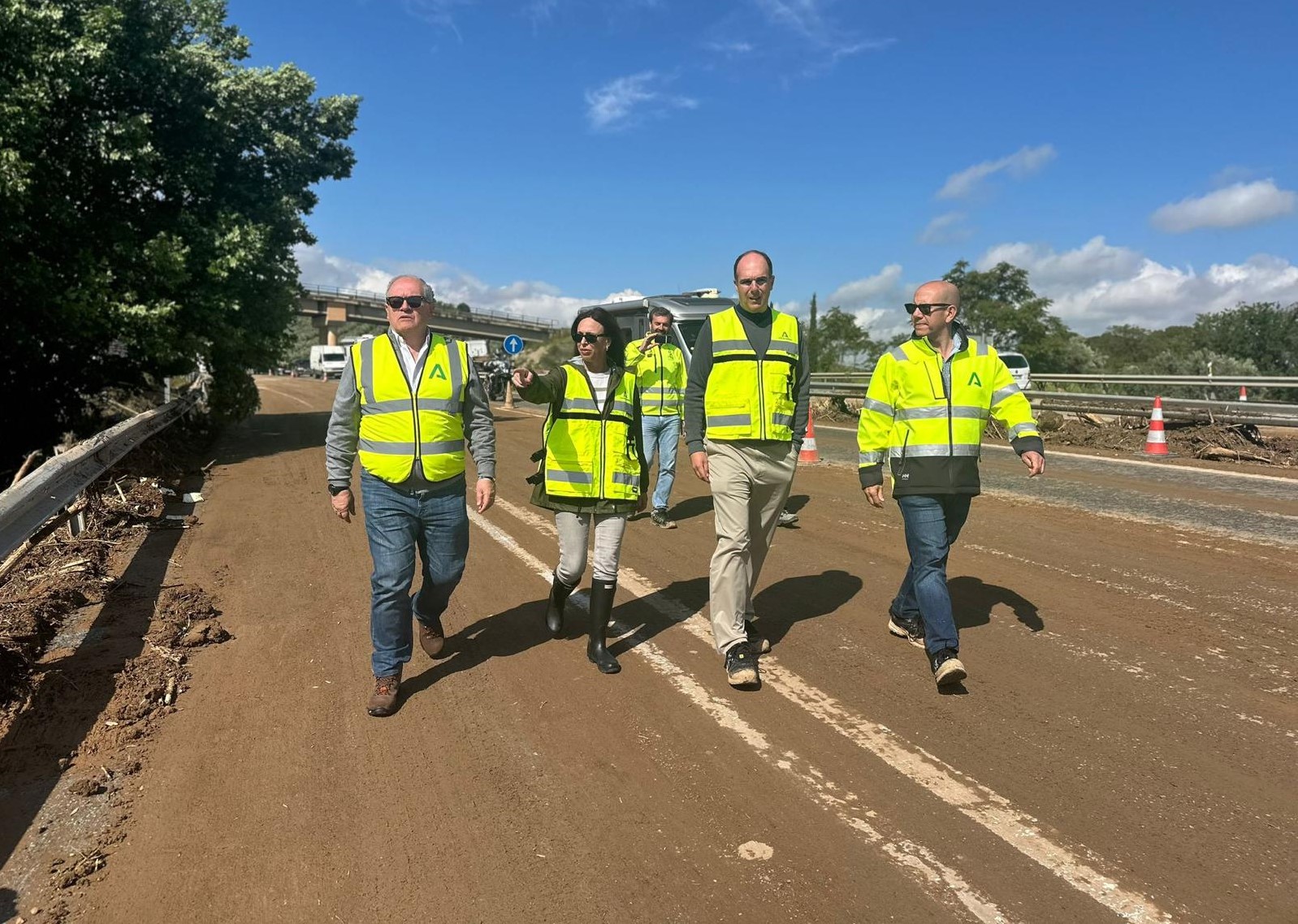 La consejera de Fomento, Articulación del Territorio y Vivienda, Rocío Díaz, se ha desplazado esta misma mañana a la A-92 para comprobar el desarrollo de los trabajos realizados por los equipos de Conservación, que siguen trabajando en la zona y que han permitido la reapertura parcial al tráfico de la autovía en ambos sentidos.