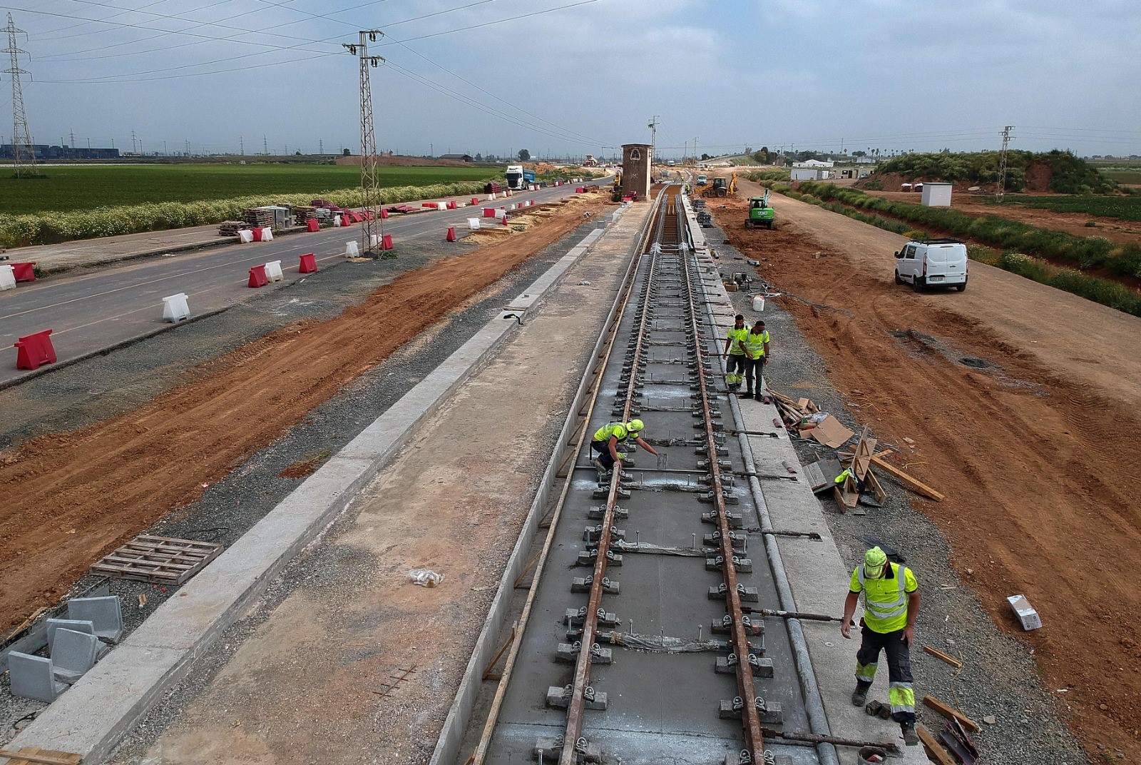 Imagen de los trabajos en el ramal técnico de la Línea 3 Norte del Metro de Sevilla.