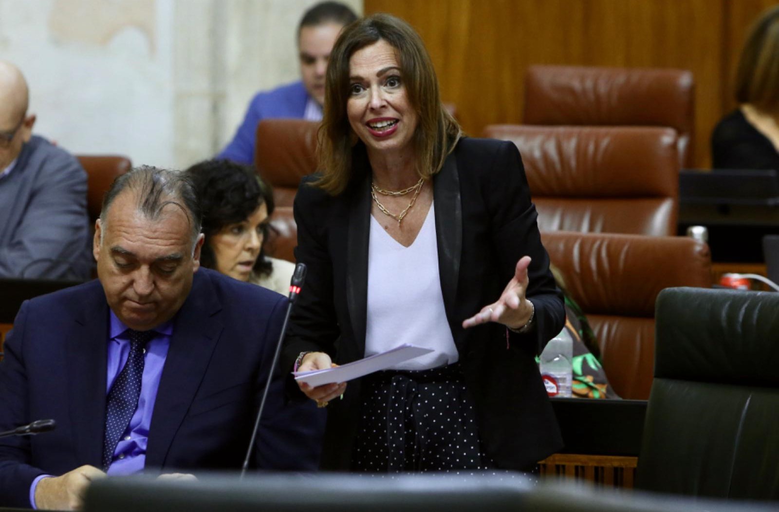 La consejera de Fomento, Rocío Díaz, durante su intervención esta mañana en el Pleno del Parlamento de Andalucía.