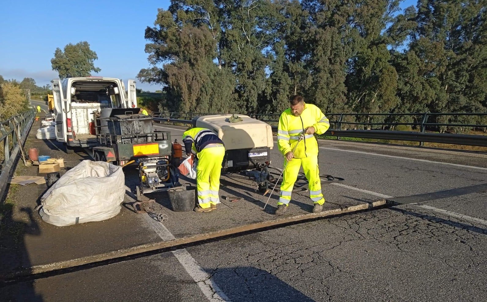 Tareas de mantenimiento en una carretera.