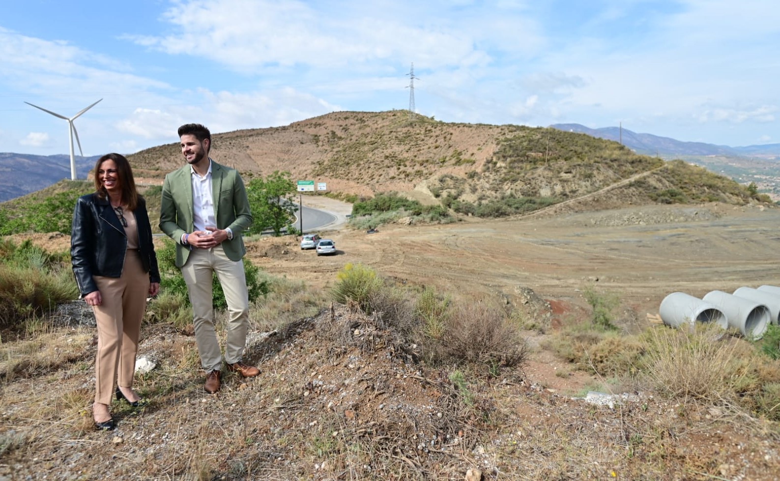 La consejera de Fomento y el alcalde de Lanjarón en la zona en la que irá este nuevo acceso a la Alpujarra.