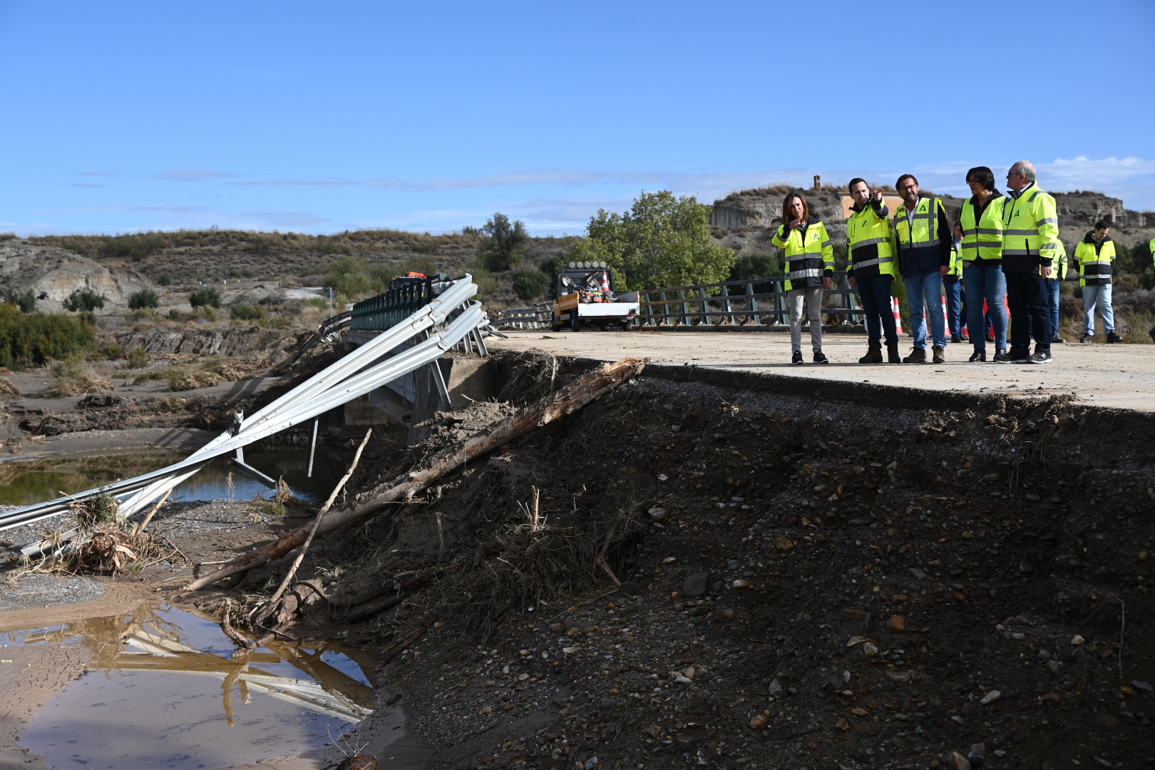 La consejera de Fomento, Rocío Díaz, en la reciente visita al puente de Baza-Benamaurel, afectado por la DANA en la provincia de Granada.