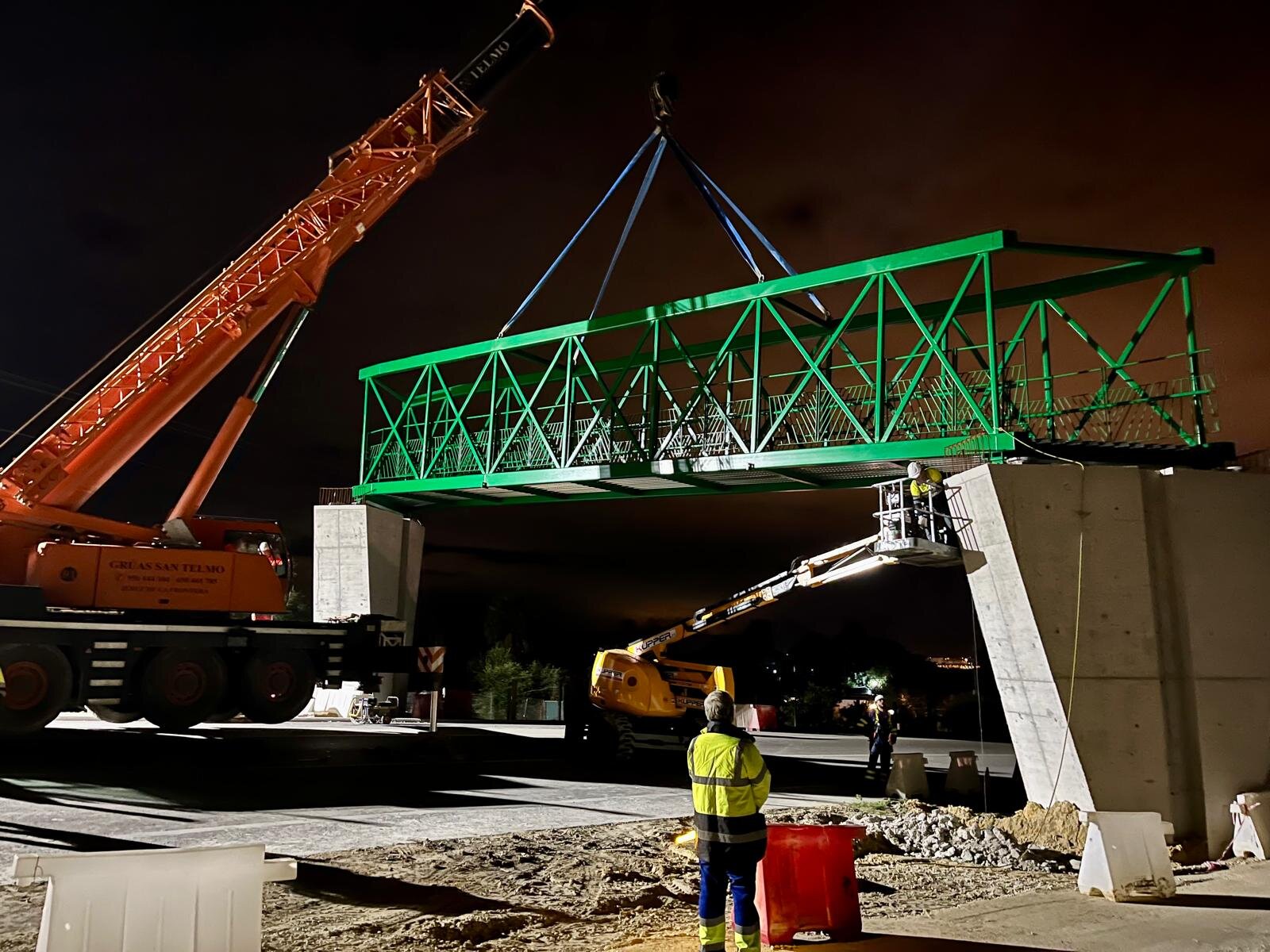 Como ya ocurriera con la pasarela metálica que se colocó a principios de noviembre en la zona de Cuartillos, esta actuación se ha realizado también de noche, porque suponía el corte total de la carretera autonómica A-2003. La estructura está formada por tres vanos, de 20, 21 y 20 metros de longitud e idénticas características a las dos montadas con anterioridad.