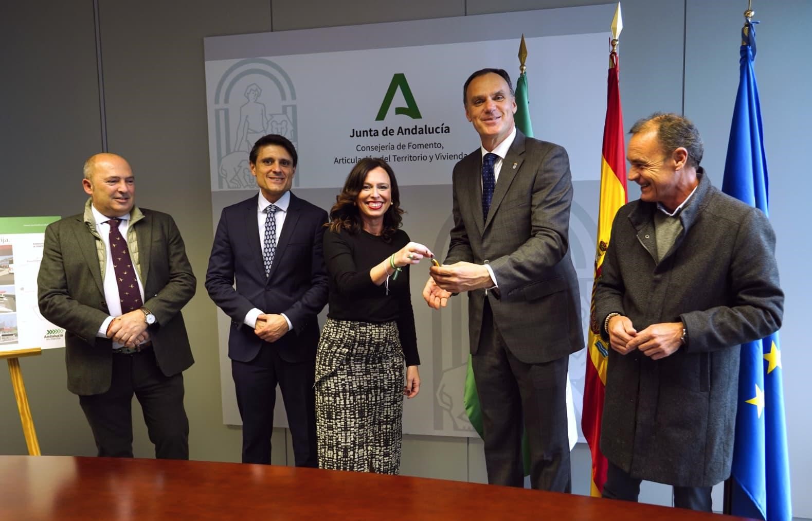 En el acto de la firma, además de la consejera y el alcalde de Lebrija, han estado el director general de Infraestructuras del Transporte, Eduardo Gutiérrez; el delegado territorial de Fomento en Sevilla, Francisco de Paula Juárez; y la concejal de Educación, Infancia y Formación, Antonio Manuel Caro.
