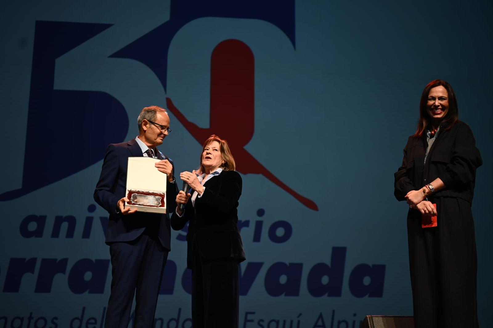 El jefe de competición de Sierra Nevada 1996 y director de montaña de Cetursa Sierra Nevada hasta 2024, Eduardo Valenzuela, recibió una placa de reconocimiento al comité organizador de los mundiales y muy especialmente a Jerónimo Páez, el gran impulsor del evento y una de las personas más relevantes de la historia contemporánea de la estación invernal granadina.