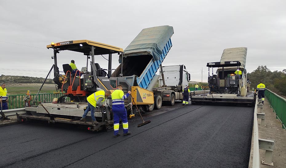 Trabajos de reparación del asfaltado de una carretera
