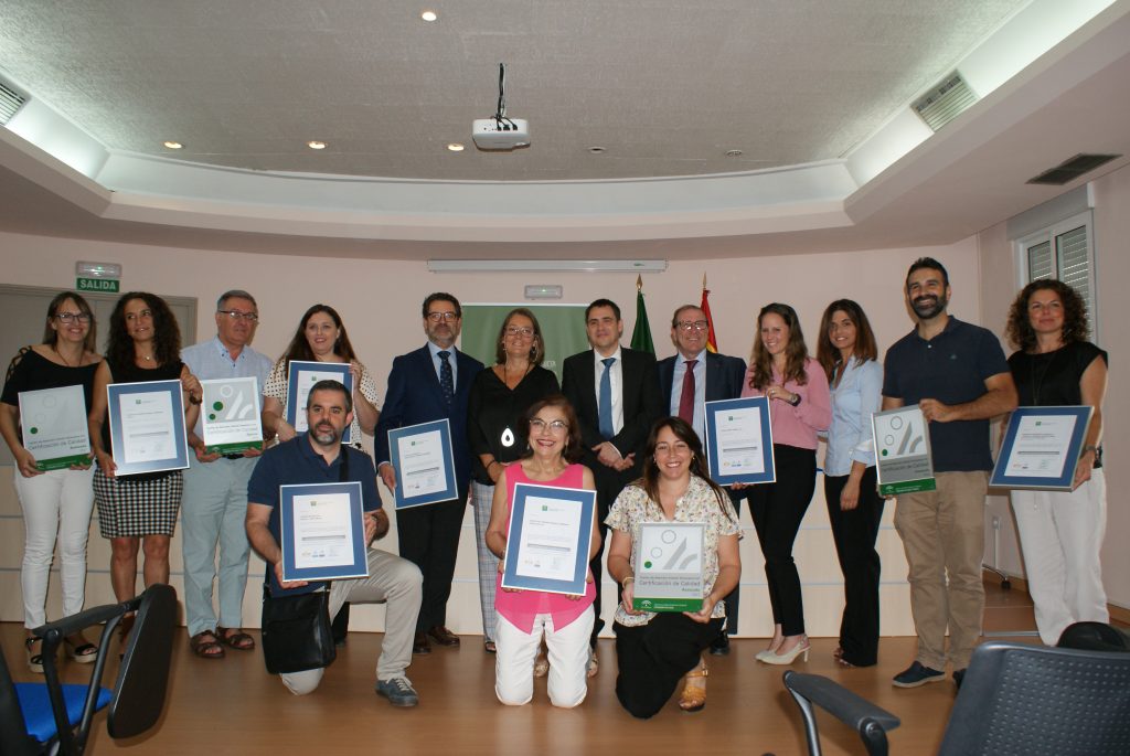 El acto de entrega de estos sellos de calidad, que se ha celebrado hoy en la Delegación Territorial de Salud y Familias en Sevilla, ha contado con la presencia de la delegada territorial del ramo, Regina Serrano Ferrero; del director de la Agencia de Calidad Sanitaria de Andalucía, José Ignacio del Río Maza de Lizana; así como de los directores y equipos de los centros que han recibido la certificación.