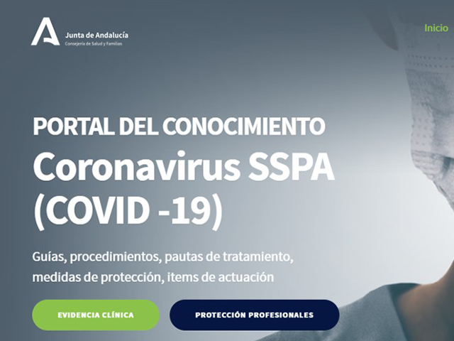 La Junta de Andalucía, a través de la Consejería de Salud y Familias, ha puesto en marcha un portal web (www.portalandaluciacovid19.es) con el conocimiento disponible sobre COVID-19 dirigido a los profesionales sanitarios y sociosanitarios, en el que se recoge la evidencia clínica hasta el momento sobre esta enfermedad, con guías y recursos web de calidad contrastada, además de información sobre protección a profesionales.