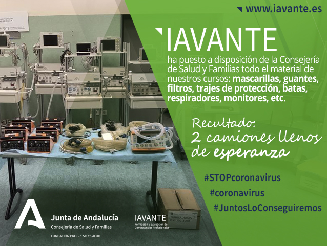 Con motivo de la actual crisis derivada de la expansión del coronavirus, IAVANTE, la línea de formación y evaluación de competencias profesionales de la Fundación Progreso y Salud, ha puesto a disposicón del Servicio Andaluz de Salud todo el material disponible que normalmente utliliza en las actividades formativas presenciales que se desarrollan, en su mayor parte, en el centro de simulación clínica avanzada, CMAT, en el Parque Tecnológico Ciencias de la Salud de Granada.