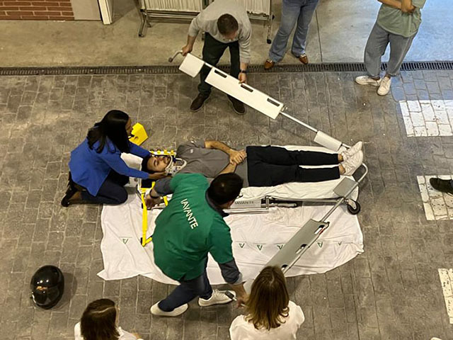 El curso, de 8 horas de duración, consiste en un circuito de varios talleres prácticos por los que pasan los participantes, 24 en la última edición celebrada recientemente, en los que actúan sobre sistemas de simulación robótica o interactúan con pacientes simulados que actúan como si tuvieran una patología concreta como una arritmia, un politraumatismo en un accidente de tráfico o que requiriesen el abordaje de la vía aérea.