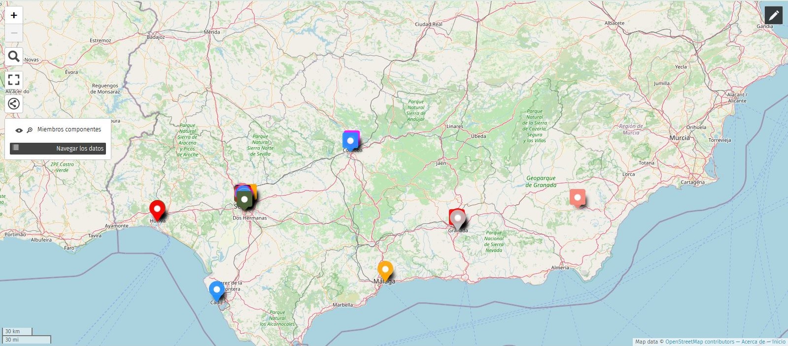 En los inicios del ejercicio de la competencia en Evaluación de Políticas Públicas, el IAAP constituyó (abril de 2016) un grupo de personas colaboradoras, pertenecientes a todas las consejerías y provincias de Andalucía. Se trata de unos cuarenta profesionales de muy diversos centros directivos que acudieron a la llamada realizada para impulsar esta actividad en la Junta de Andalucía, en la que participan de forma voluntaria y en paralelo a su puesto de trabajo específico en sus consejerías y agencias. Estas personas ostentan diversidad de titulaciones y especializaciones formación y experiencia en distintos ámbitos relacionados con la Evaluación de Políticas y muestran un alto compromiso por la mejora de la organización (clic en el mapa) .