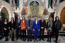 Al acto de presentación, que ha tenido lugar en la capilla de la Hermandad del Rocío de Huelva, han asistido el presidente de la Hermandad, Juan Carlos Rubio, el director general de Patrimonio Histórico e Innovación y Promoción Cultural, Mario Martín, la delegada del Gobierno en Huelva, Bella Verano, la delegada territorial de Turismo, Cultura y Deporte en Huelva, Teresa Herrera, el alcalde de Huelva, Gabriel Cruz, el presidente de Caja Rural del Sur, José Luis García-Palacios, y el director del IAPH, Juan José Primo, que han podido contemplar el estado de la pieza tras su paso por el Instituto.