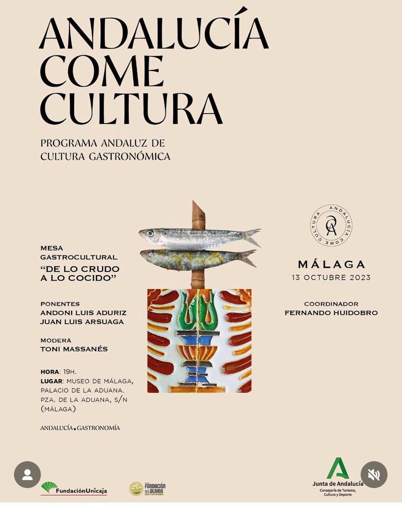 El programa andaluz de cultura gastronómica ‘Andalucía come Cultura’ celebrará el 13 de octubre en Málaga la tercera mesa redonda ‘De lo crudo a lo cocido (...y de ahí a la industria cultural gastronómica)’ del ciclo que se inició en Jaén en el mes de junio. El Museo de Málaga acogerá esta actividad diseñada por Toni Massanés, Premio Ciudad de Barcelona y Juan Mari Arzak de Gastronomía y Medios de Comunicación y director general desde su creación en 2004 de la Fundación Alicia, el primer laboratorio gastronómico que investiga con rigor científico.