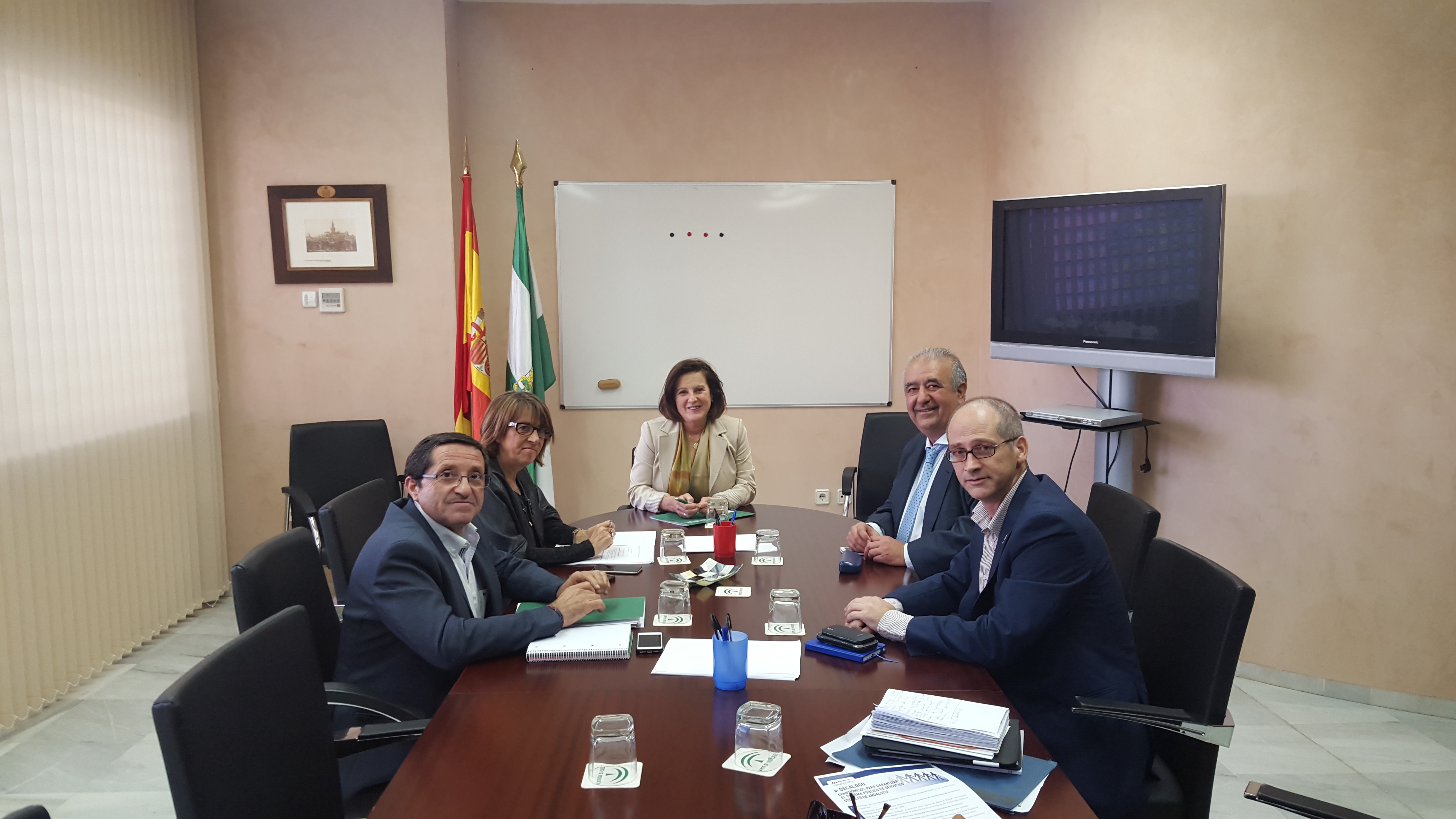 La consejera de Igualdad y Políticas Sociales, María José Sánchez Rubio, se ha reunido con el nuevo presidente del Consejo Andaluz de Colegios Profesionales de Trabajo Social, Gonzalo Cañestro, en una primera toma de contacto en la que han abordado asuntos de interés como el decálogo de servicios sociales, que ha elaborado el Consejo. La consejera por su parte ha trasladado a los profesionales la próxima Ley de Servicios Sociales, que será el instrumento que termine de configurar el sistema de servicios sociales en Andalucía. La norma se prevé que entre en trámite parlamentario en el próximo periodo de sesiones.
