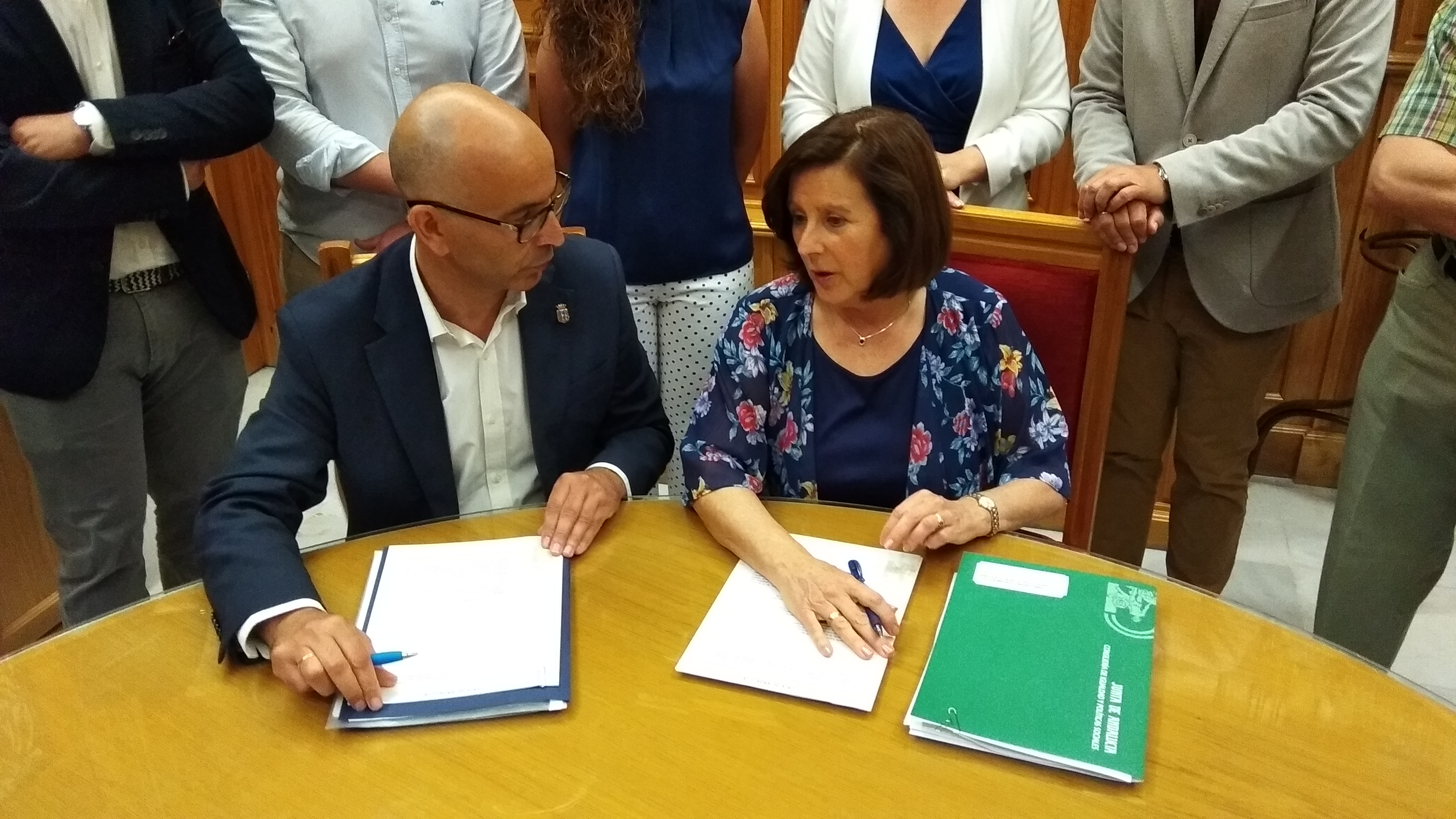 Previamente a la suscripción del convenio, la consejera ha mantenido un encuentro institucional con la Corporación municipal de Santa Fe y ha firmado en el Libro de Honor.
