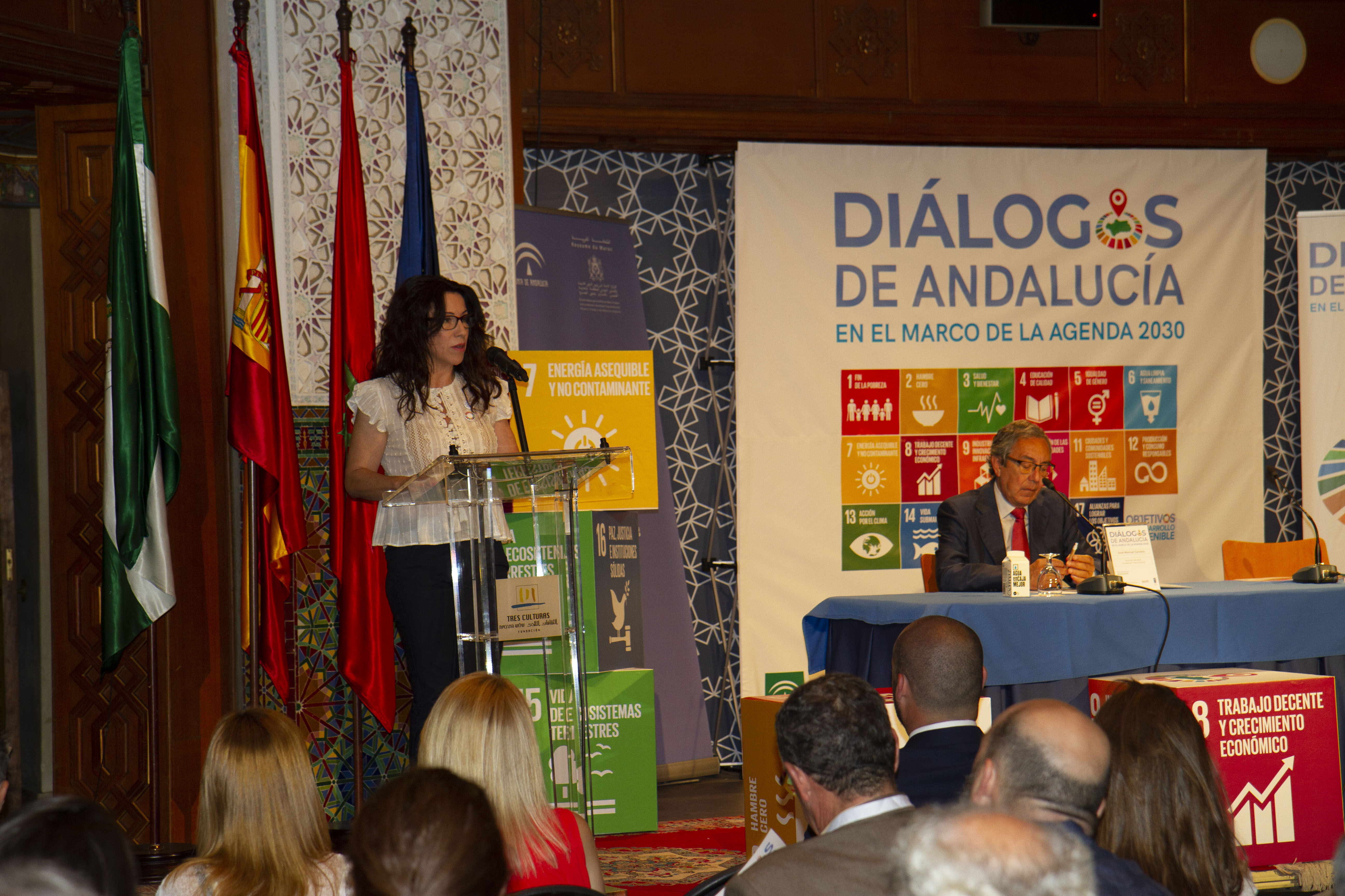La consejera de Igualdad, Políticas Sociales y Conciliación, Rocío Ruiz, ha asistido hoy en Sevilla, en la sede de la Fundación Tres Culturas, a la inauguración de la jornada “Diálogos de Andalucía en el marco de la Agenda 2030”, un encuentro de debate y reflexión organizado por la Agencia Andaluza de Cooperación Internacional para el Desarrollo (AACID) y el Programa de las Naciones Unidas para el Desarrollo (PNUD), en torno a la elaboración participativa del III Plan Andaluz de Cooperación para el Desarrollo (PACODE 2019-2023).