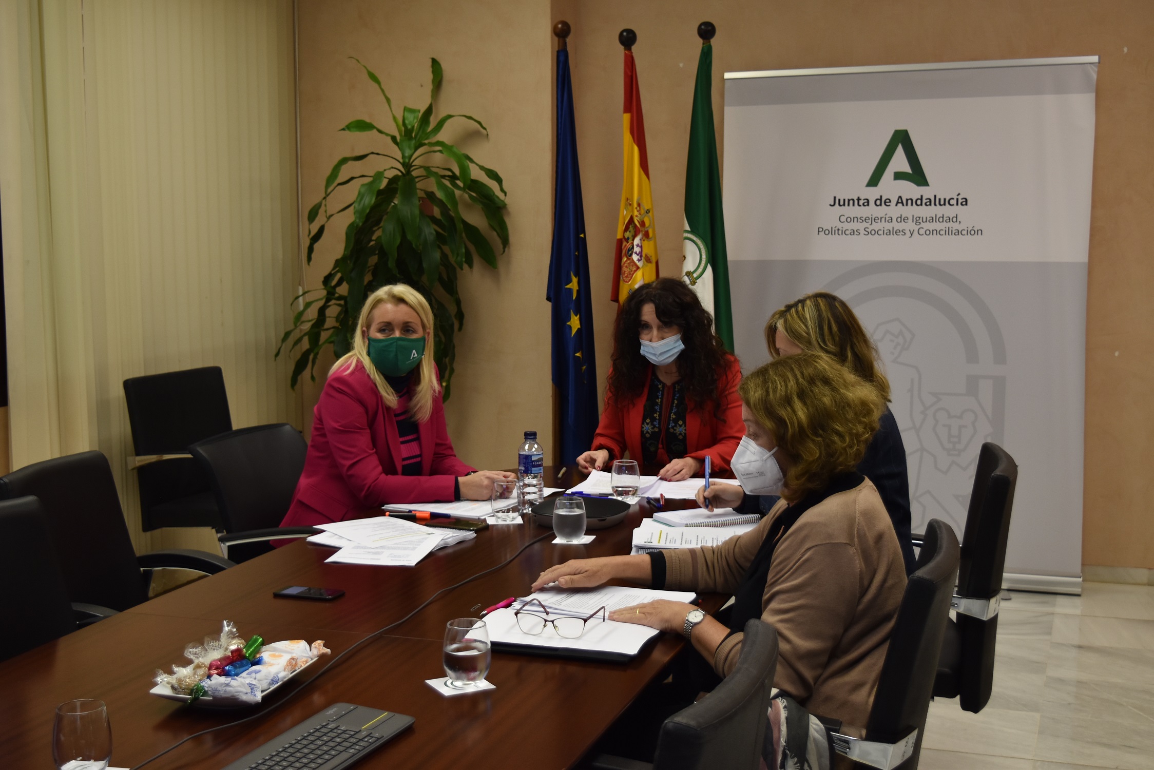 La consejera de Igualdad, Políticas Sociales y Conciliación, Rocío Ruiz, ha presidido esta tarde la reunión de la Comisión Interdepartamental para la Igualdad de Mujeres y Hombres en la que se ha hecho balance de las medidas impulsadas a través de las distintas consejerías del Gobierno andaluz en materia de igualdad en los dos años de legislatura.