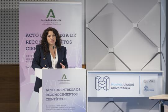 La consejera de Igualdad, Políticas Sociales y Conciliación, Rocío Ruiz, ha presidido la entrega de reconocimientos científicos del XI Congreso para el Estudio de la Violencia contra las Mujeres, celebrado el pasado mes de noviembre. Ruiz ha agradecido la labor del Comité científico que ha seleccionado los trabajos galardonados y ha subrayado que “la pandemia ha servido para demostrar la fortaleza del sistema andaluz de atención a las mujeres víctimas de violencia machista”.