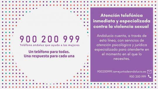 Andalucía cuenta desde 2018 con el Servicio de atención inmediata psicológica 24 horas a las mujeres víctimas de violencia sexual en Andalucía que tiene como objetivo dar asistencia psicológica profesional y especializada en el momento y el lugar de los hechos a las andaluzas que hayan sufrido una agresión sexual con independencia del municipio. Desde entonces el Instituto Andaluz de la Mujer (IAM) ha atendido a más de 150 mujeres (152) a través de este programa pionero que lleva a cabo una intervención en crisis fundamental para minimizar el impacto emocional y evitar la victimización secundaria.