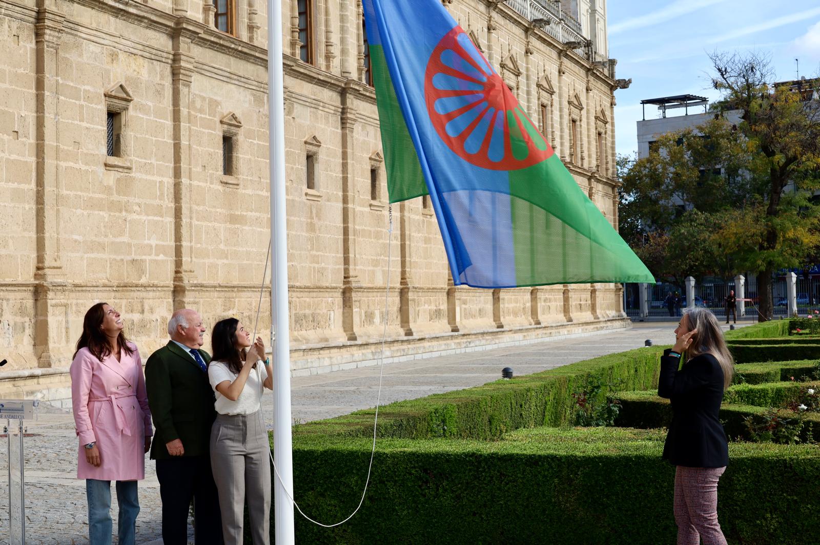 Posteriormente, la consejera ha participado en el acto de lectura del manifiesto del Día de los Gitanos y Gitanas andaluces y el izado de la correspondiente bandera. Un acto institucional cargado de simbolismo y reivindicación con el objetivo de mejorar su inclusión y que ha concluido con el canto del himno ‘Gelem, Gelem’. La vicepresidenta segunda del Consejo Andaluz del Pueblo Gitano, Ostalinda Maya, ha sido la encargada de leer el manifiesto.