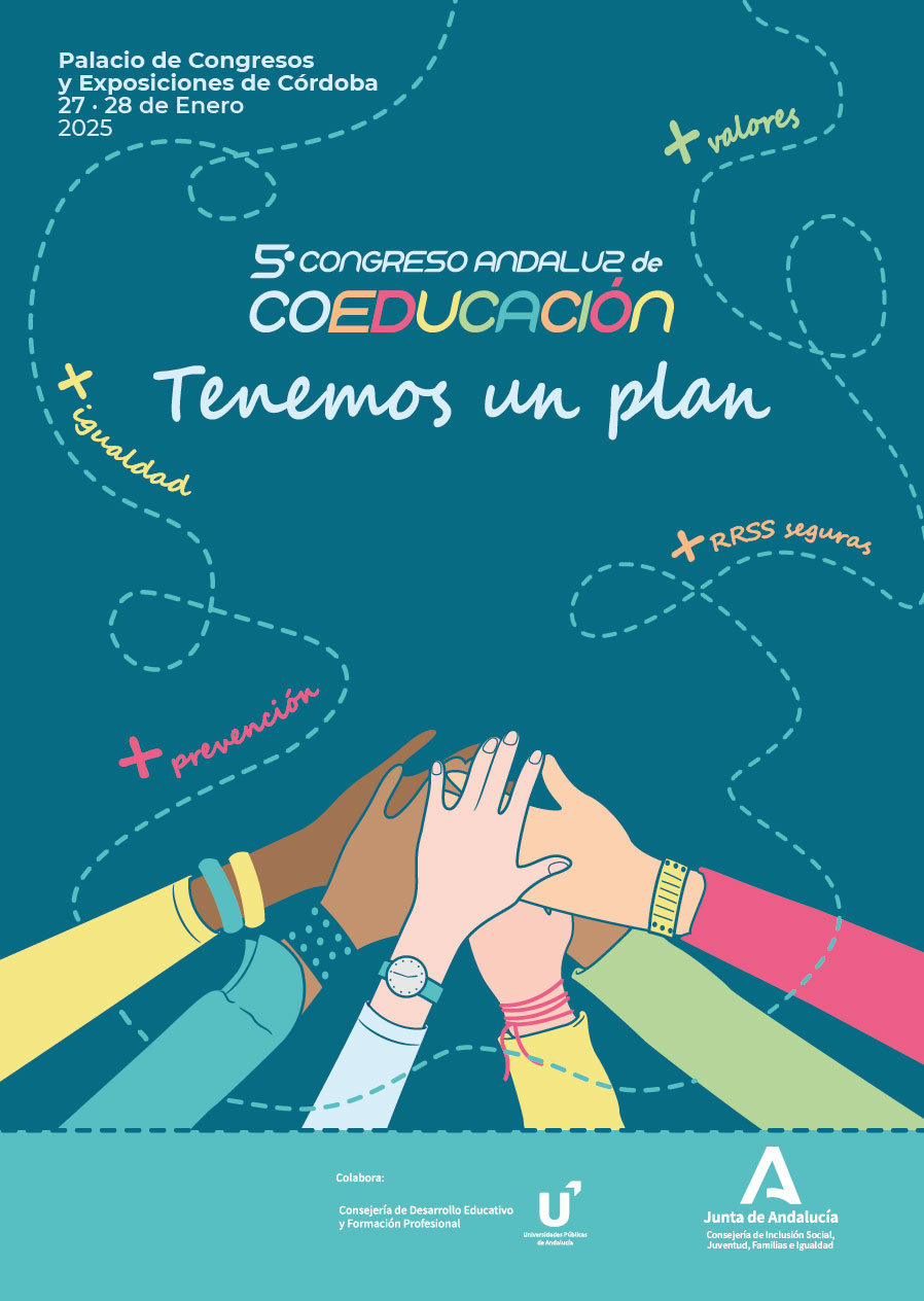 El Palacio de Congresos de Córdoba acogerá los días 27 y 28 de enero el V Congreso Andaluz de Coeducación que organiza la Consejería de Inclusión Social, Juventud, Familias e Igualdad, a través del Instituto Andaluz de la Mujer (IAM), en colaboración con la Consejería de Desarrollo Educativo y Formación Profesional y las Universidades Públicas de Andalucía. Este encuentro, que lleva por título ‘Tenemos un plan’, pondrá el foco en las desigualdades y manifestaciones de la violencia de género que más afectan a la juventud. El plazo para la inscripción, así como para la presentación de comunicaciones ya está abierto y se puede realizar a través de este enlace.