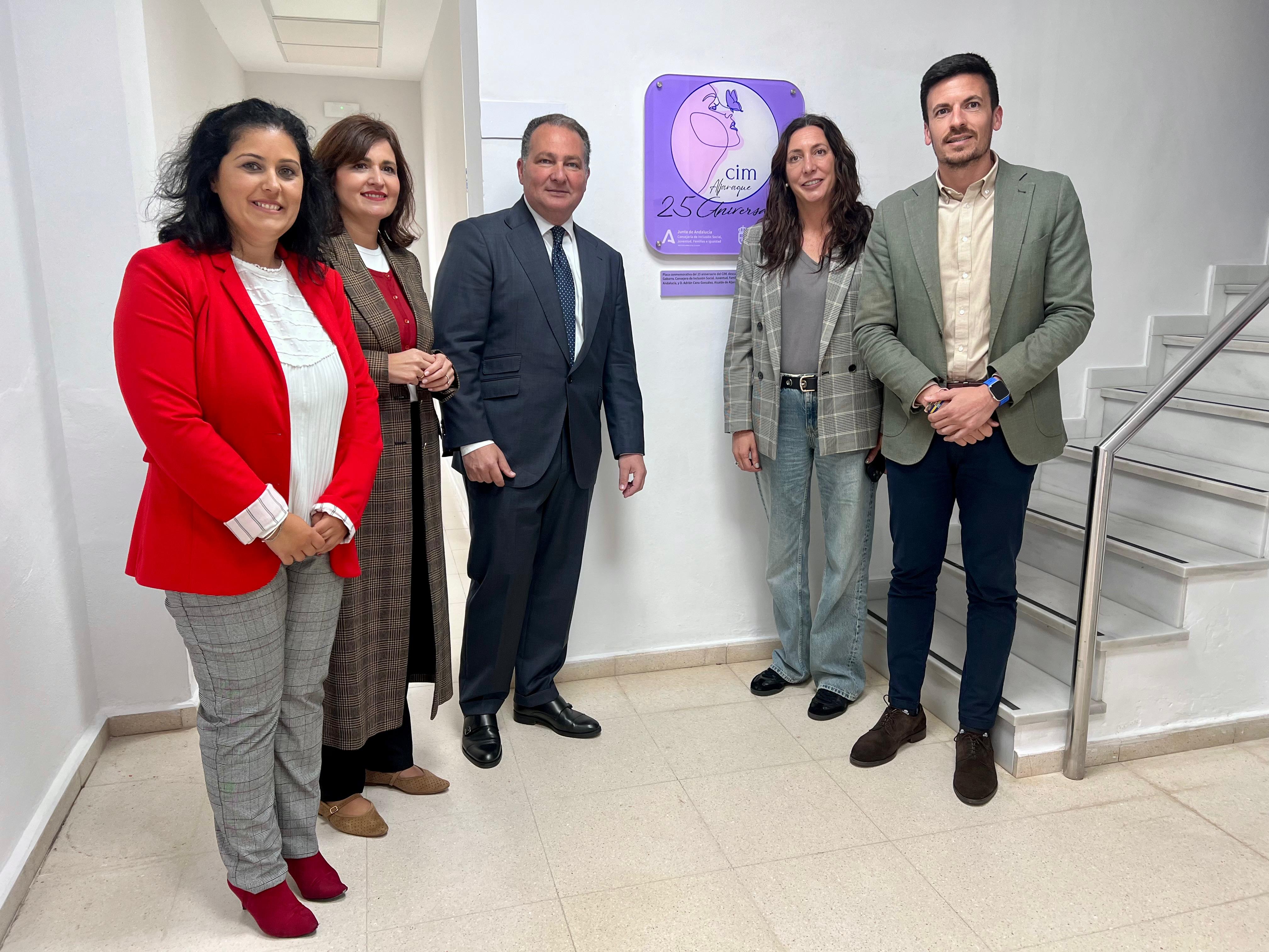 Acompañada por el alcalde de Aljaraque, Adrián Cano, la consejera ha descubierto la placa conmemorativa y ha resaltado que este centro “realiza una labor esencial para las mujeres en el ámbito social, laboral, jurídico o psicológico, promueve el asociacionismo y, por supuesto, presta atención a las víctimas de violencia de género”. A este respecto, ha hecho hincapié en que “la igualdad no se trabaja solo el 8M o el 25N, la igualdad se trabaja los 365 días del año y así lo estamos haciendo desde el Gobierno andaluz con los Centros Municipales de Información a la Mujer”.