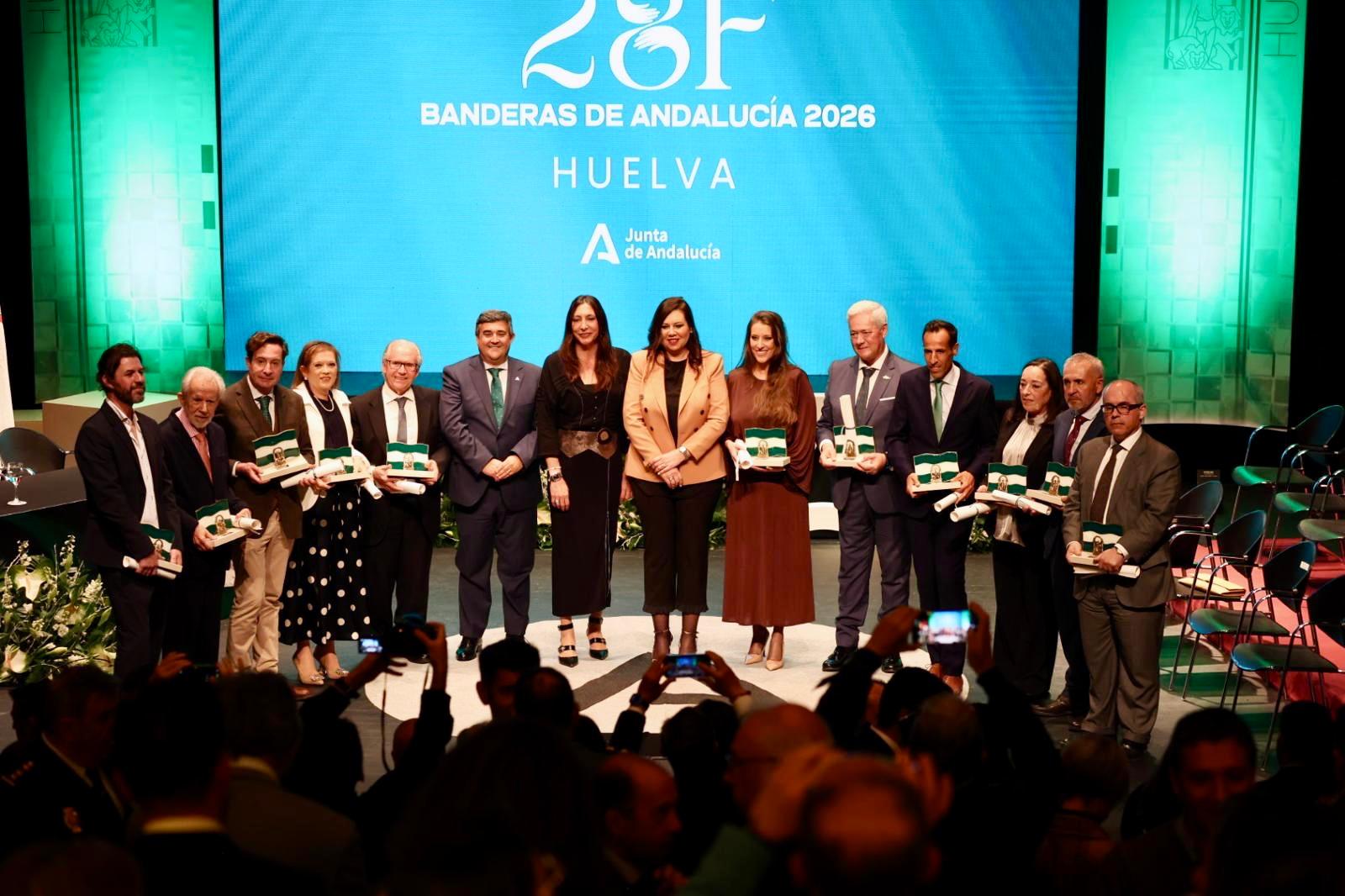 Esta ceremonia de entrega de las Banderas de Andalucía 2025 ha contado también con la asistencia del secretario de la Mesa del Parlamento andaluz, Manuel Andrés González, y el presidente de la Diputación onubense, David Toscano, además de los premiados y otras autoridades.